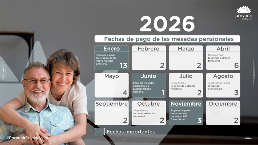 Legalmente el pago de las mesadas pensionales deben realizarse a mes vencido pero Porvenir, pensando en el bienestar de sus pensionados, lo realiza anticipadamente, dentro de los primeros diez días de cada mes.