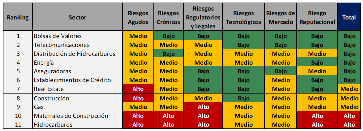 Con este objetivo en mente, realizamos un proceso de evaluación detallado para identificar las vulnerabilidades de una parte de nuestro portafolio frente a los riesgos y oportunidades derivados del cambio climático. Para ello, hemos desarrollado una metodología interna que mide la exposición de nuestras inversiones, considerando tanto la probabilidad de ocurrencia como el impacto potencial de estos riesgos. A continuación, se presenta la tabla que ilustra este análisis